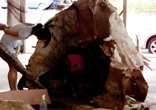 ダンボールで恐竜をつくっているといううわさを聞きつけ