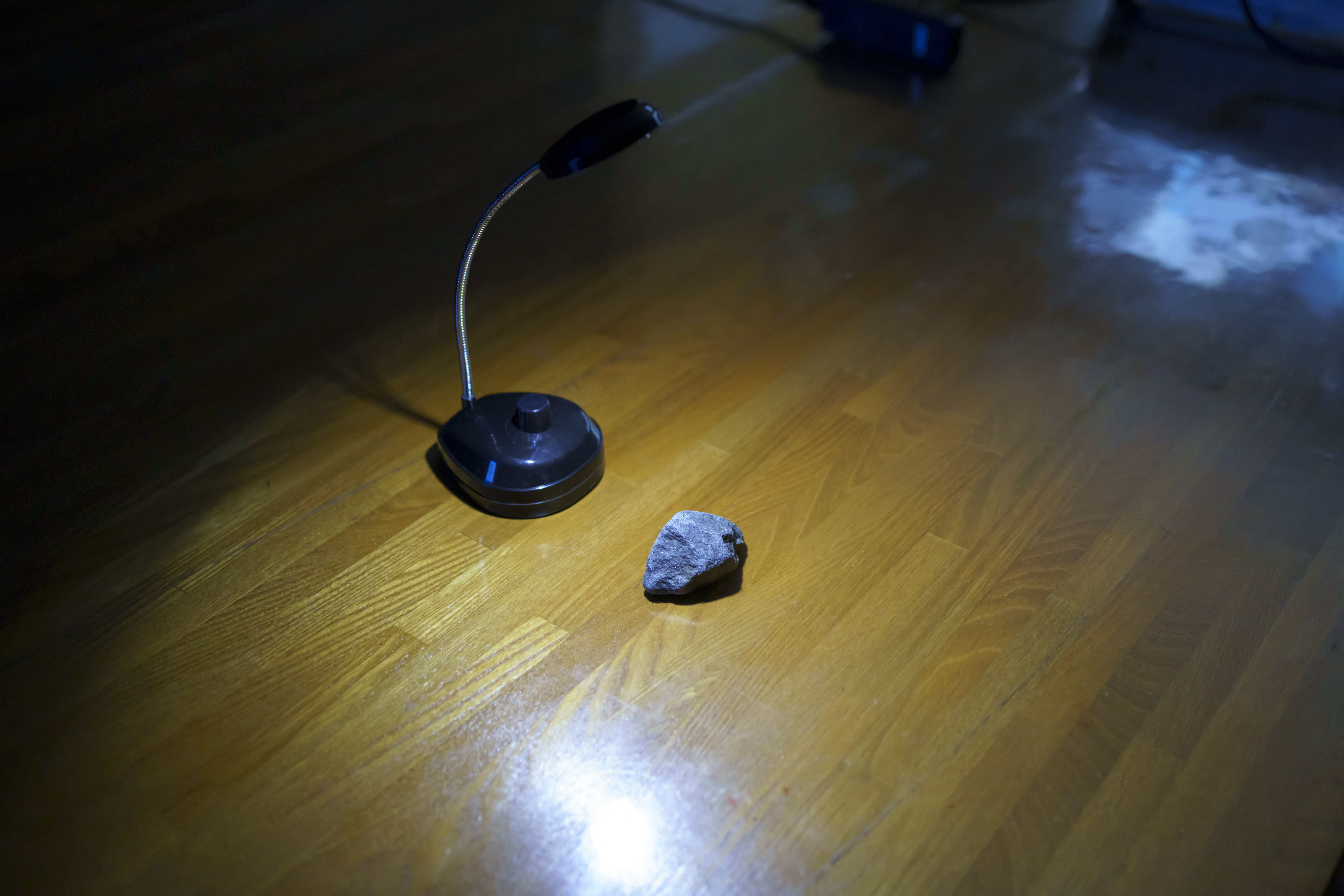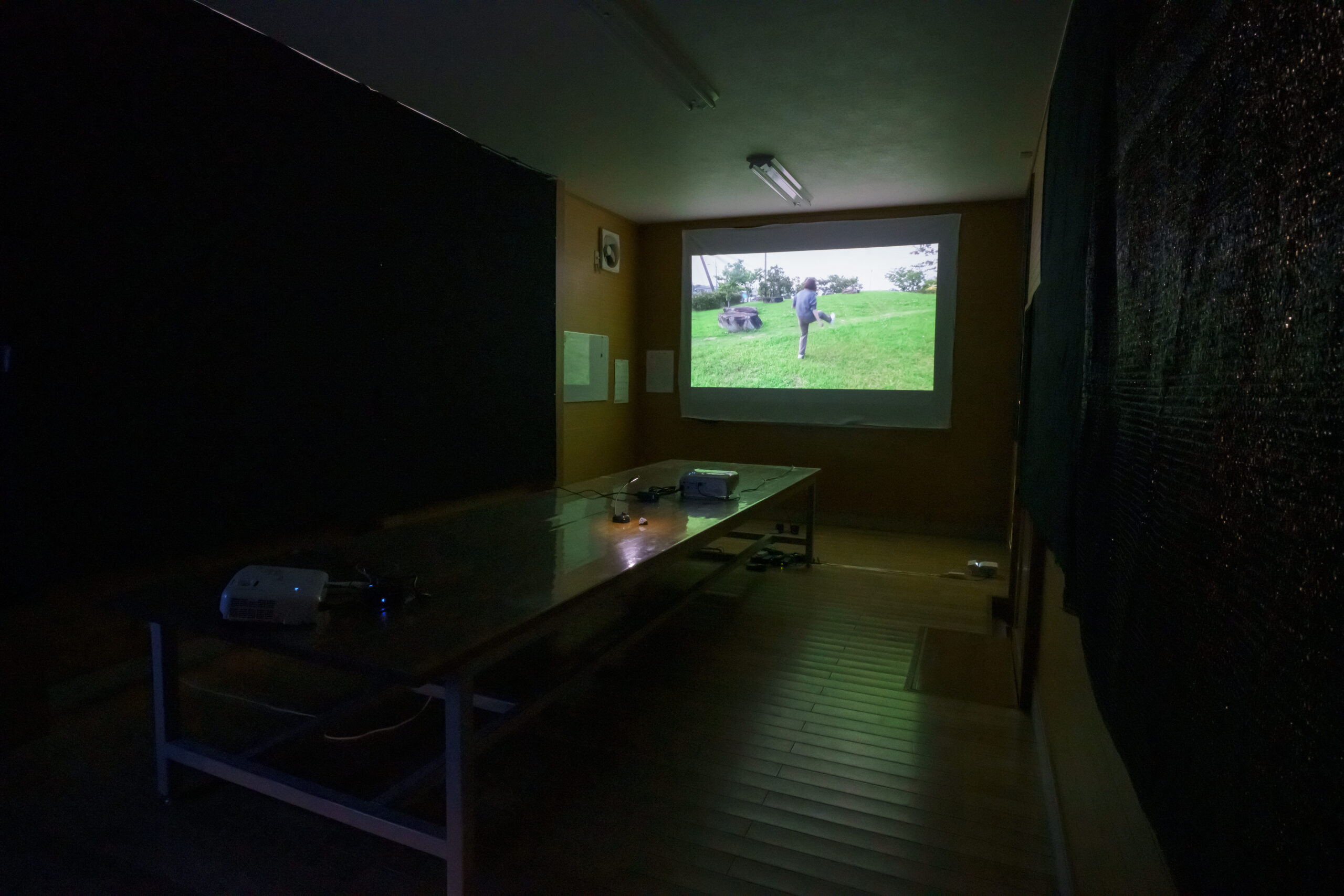 来訪者を迎えるカラス、白鳥との会話、石蹴り遊び……てらいのない瑞々しい感性が、多種多様なメディア(ポスター、Map、本、液晶ディスプレイ、プロジェクター、石ころ)と空間構成によって、技巧的に表現されている点も興味深い。スピーカーのサイズ感と床面への設置が的確だったためか、石ころを蹴飛ばす音も妙にリアルに感じられた。