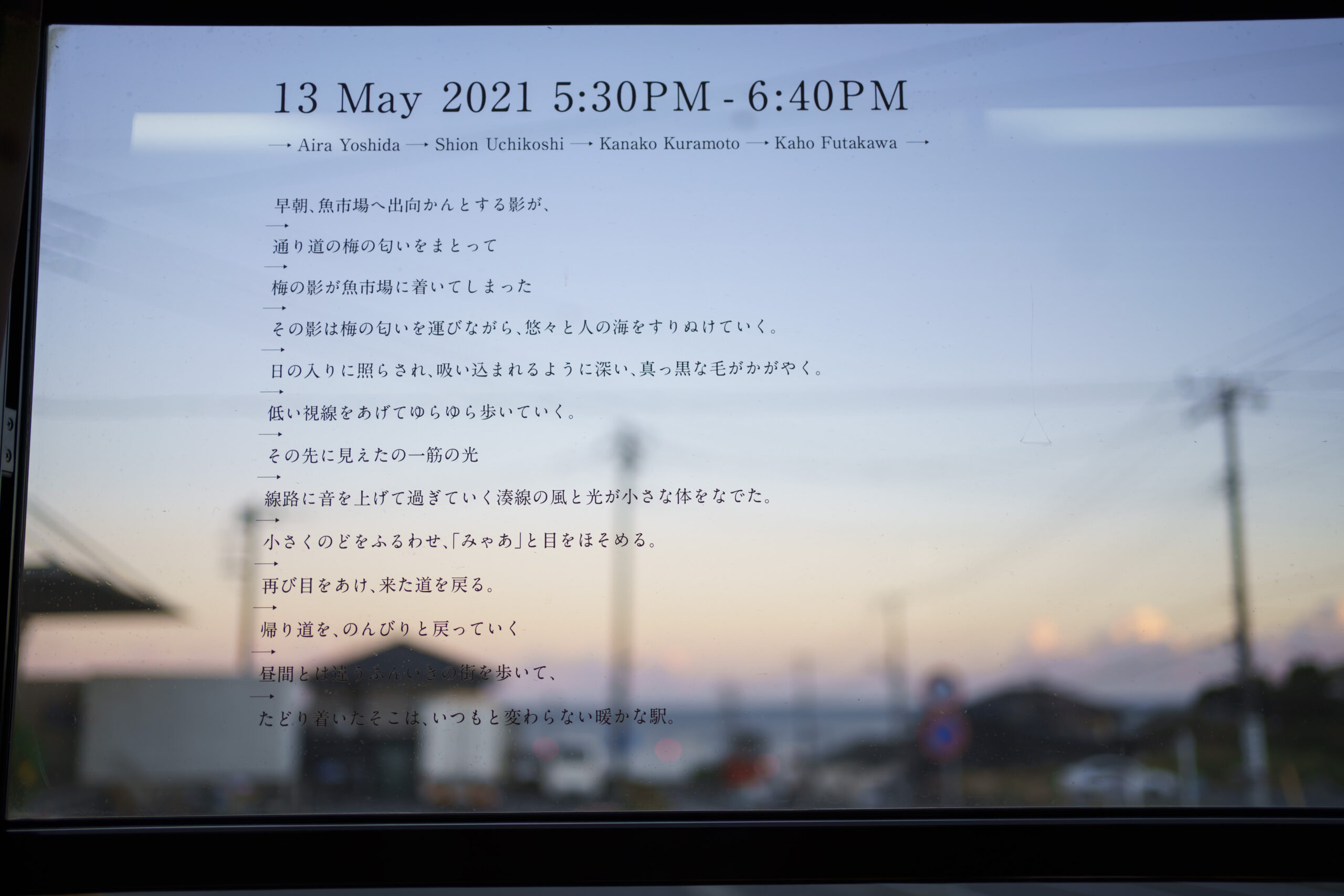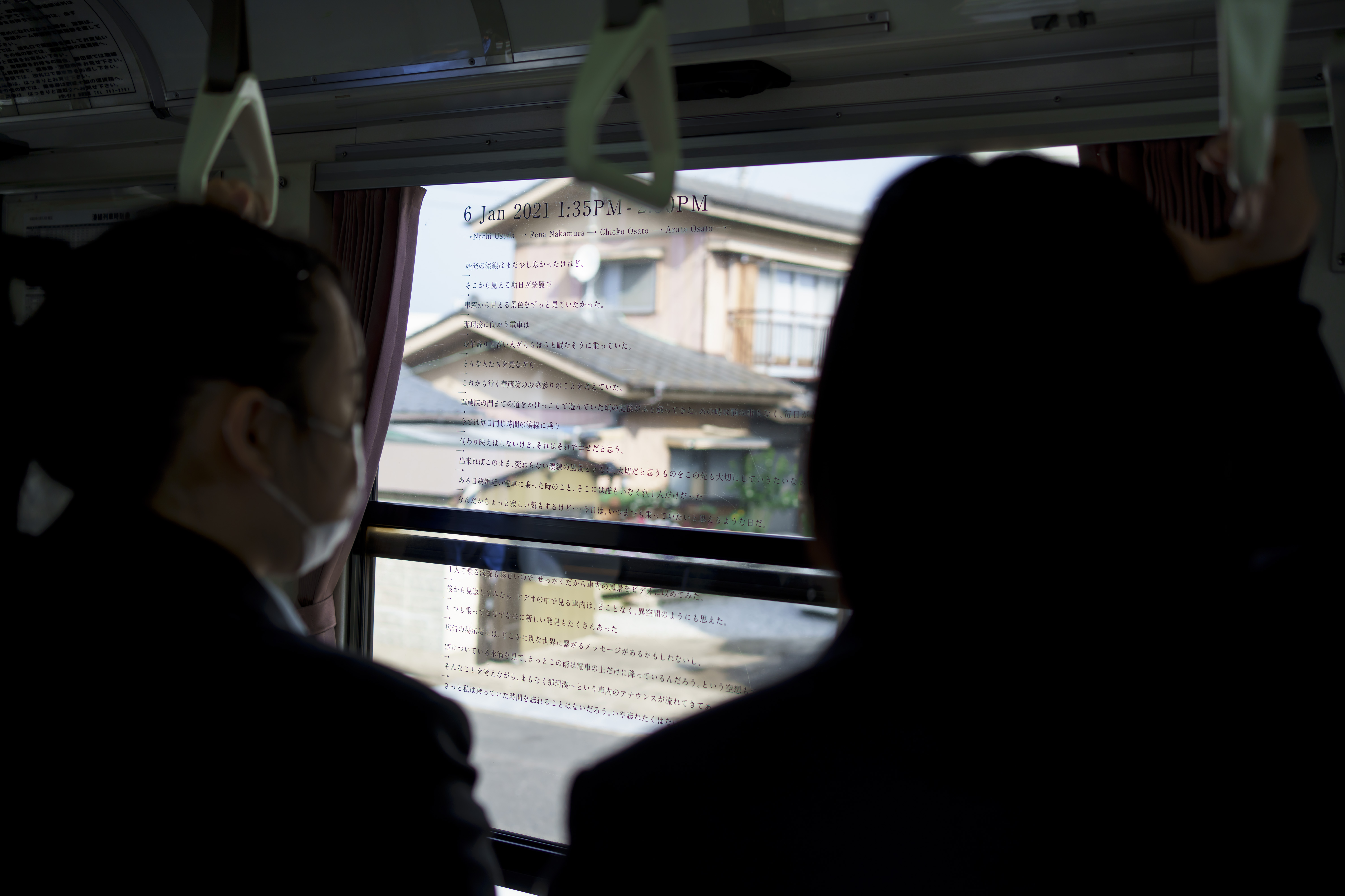 日常の風景に優しく作品が浸透し、乗車した多様な人たちへ語りかけるコミュニケーションの可能性を提示する作品だと感じました。誰かと誰かの言葉のリレーの末にバトンを鑑賞者に譲渡し、もし(if)自分ならと心の扉を開き、「もしもし」とまた誰かに言葉を紡いでいく…作品の構成要素はシンプルでありながらも、その受け取り方や感じ方は多様で、また鑑賞する状態や状況によっても様々に変化する非常に豊かな鑑賞体験を得ることができると感じました。